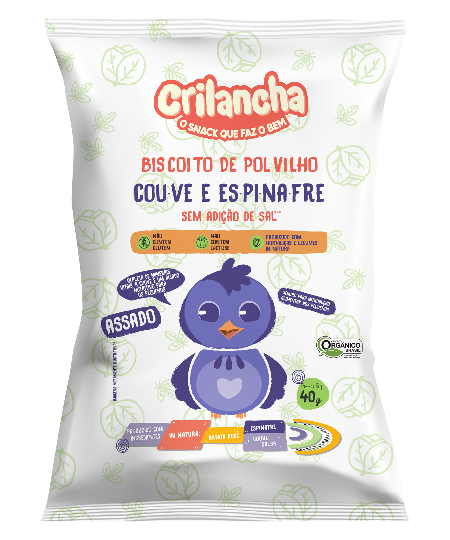 Temos opções para todas as idades! O biscoito de couve e espinafre é ideal para bebês em introdução alimentar, pois não contém sódio. Já os outros biscoitos infantis possuem adição mínima de sódio, dentro das recomendações nutricionais.