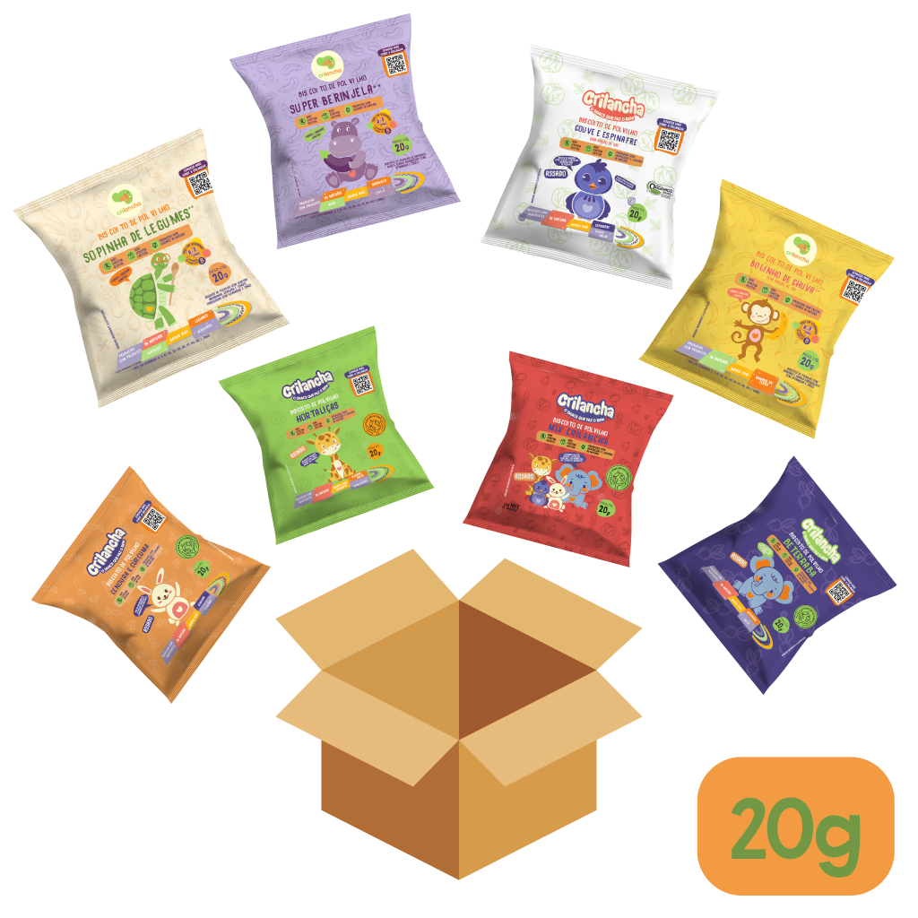 Temos opções para todas as idades! O biscoito de couve e espinafre é ideal para bebês em introdução alimentar, pois não contém sódio. Já os outros biscoitos infantis possuem adição mínima de sódio, dentro das recomendações nutricionais.